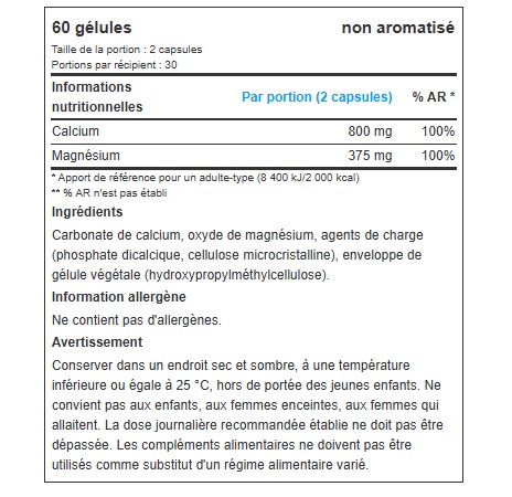 هذا المكمل يوفر جرعة متوازنة من الكالسيوم والمغنيسيوم، وهو مهم لتفادي نقص أحدهما الذي قد يؤثر سلبًا على امتصاص الآخر أو على وظائف الجسم. -