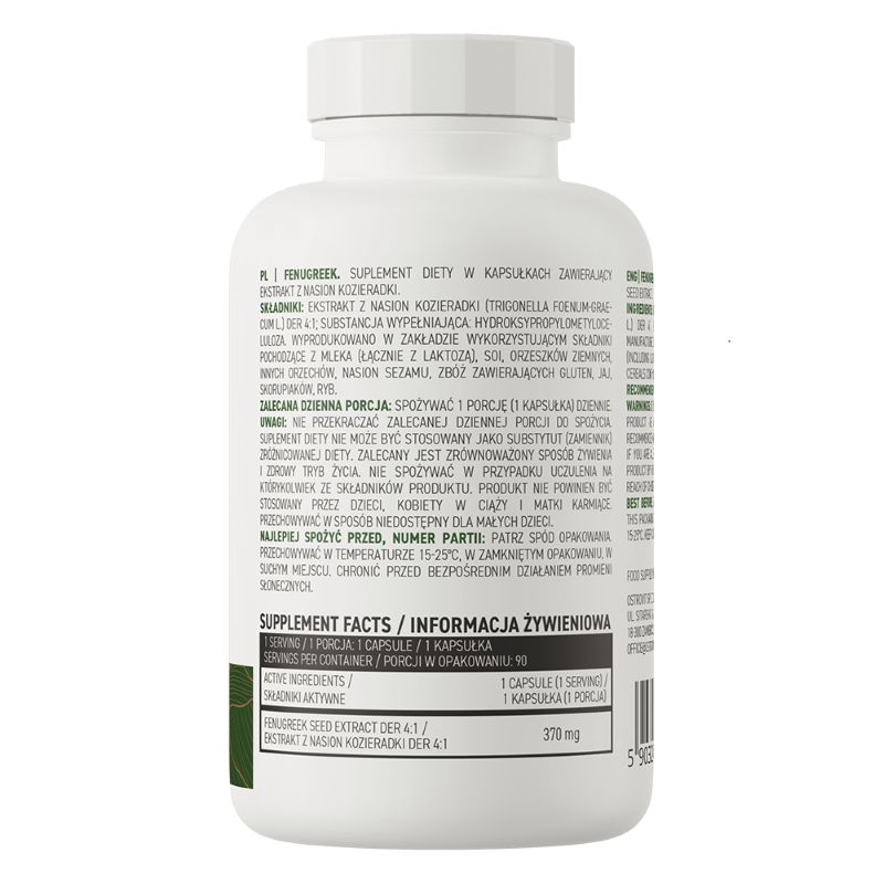 تحتوي كل حصة على 370 مجم من خلاصة بذور الحلبة، بينما توفر العبوة 90 كبسولة = 90 حصة، أي ما يكفي لمدة تصل إلى 3 أشهر من الاستخدام المنتظم.