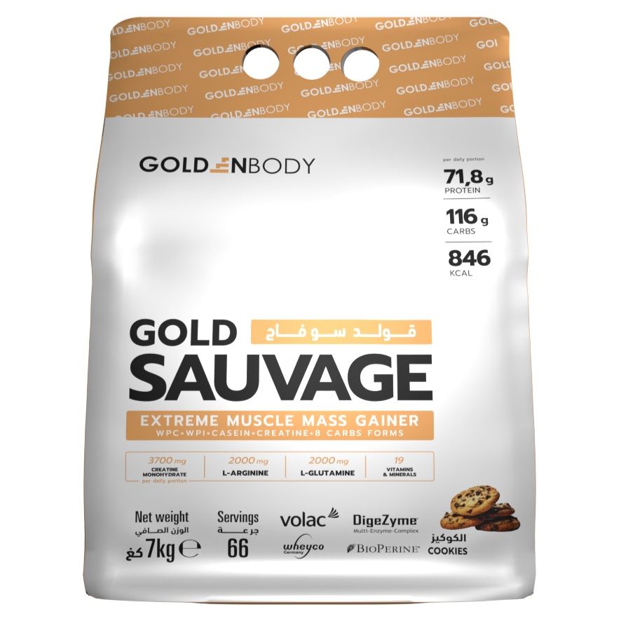 Golden Body Gold Sauvage 7000g هو مكمل غذائي بروتيني عالي الطاقة مصمم خصيصًا لدعم زيادة الكتلة العضلية وتحسين أداء التمارين الرياضية الطويلة والمكثفة. تركيبة هذا المنتج فريدة من نوعها، تجمع بين مصادر بروتينية متنوعة وطاقة سريعة الامتصاص، لتوفر دعمًا غذائيًا شاملًا للرياضيين والمهتمين بصحة الجسم وبناء العضلات بطريقة فعّالة.