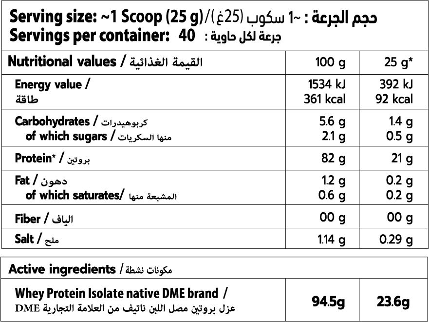 ISOLATE NATIVE 2000G هو مكمل غذائي بروتيني عالي الجودة مصنوع من واي بروتين أيزوليت نقي (Native Whey Protein Isolate)، يتميز بنسبة بروتين عالية جدًا مع الحد الأدنى من الدهون والسكريات، مما يجعله خيارًا مثاليًا للرياضيين ولاعبي كمال الأجسام الذين يسعون إلى بناء عضلات قوية ونظيفة دون سعرات زائدة.