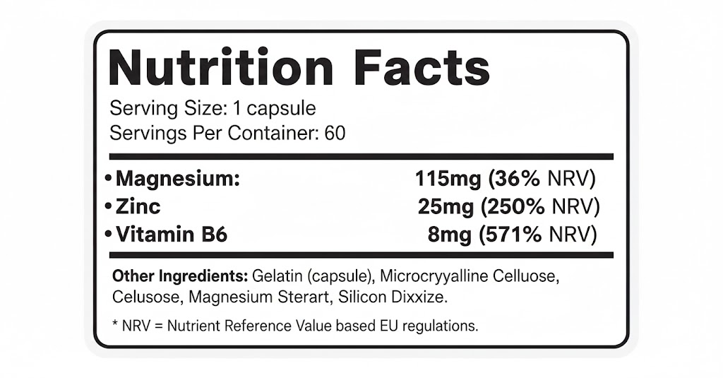 صُممت هذه التركيبة خصيصاً لمساعدة الرياضيين والأشخاص النشطين على تحقيق أقصى استفادة من تدريباتهم. يعمل المغنيسيوم بجرعته الفعالة على دعم تقلصات العضلات الصحية وتقليل التشنجات الليلية، إلى جانب دوره الأساسي في إنتاج الطاقة وتقليل الشعور بالتعب والإرهاق. يساهم الزنك، بتركيزه العالي، في الحفاظ على مستويات مثالية لهرمون التستوستيرون الطبيعي، وهو مفتاح للقوة والنمو العضلي. كما أن الزنك ضروري لدعم وظائف جهاز المناعة والحماية من الإجهاد التأكسدي. وأخيراً، يعمل فيتامين ب6 على زيادة امتصاص هذين المعدنين ودعمهما، كما يلعب دوراً حيوياً في تنظيم النشاط الهرموني وفي عمليات التمثيل الغذائي للبروتين والجليكوجين، مما يجعله مكملاً شاملاً لدعم رحلتك نحو اللياقة البدنية الأفضل.